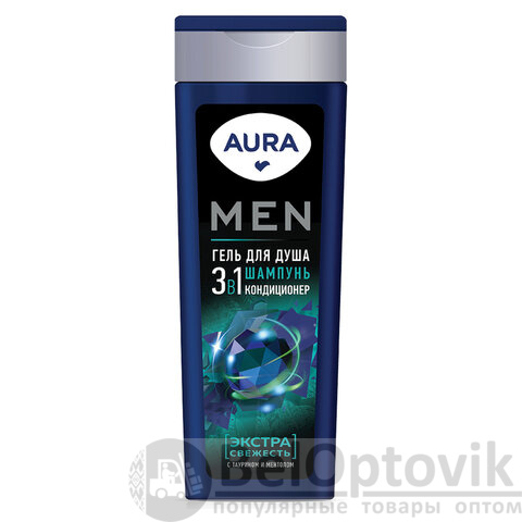 Универсальный гель для душа и волос с настоящим мужским ароматом. Глубокое очищение, свежий вид и бодрость на весь день. Попробуйте AURA MEN "Экстра Свежесть" уже сегодня!