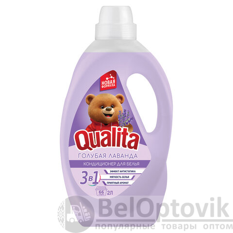 Кондиционер-ополаскиватель для белья 2л QUALITA "Голубая лаванда", с антистатиком, 14363