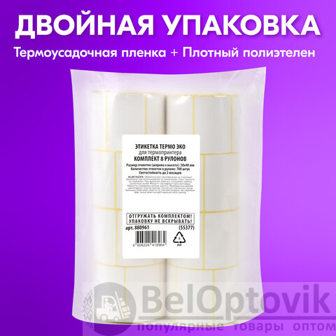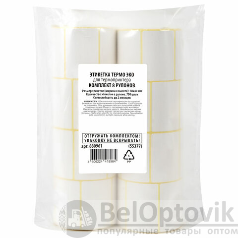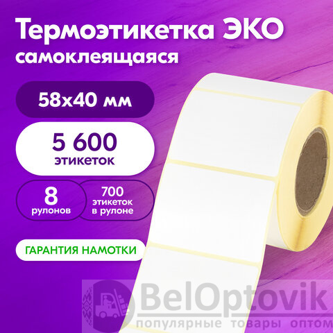 Этикетка ТермоЭко (58х40 мм), 700 этикеток в ролике, КОМПЛЕКТ 8 шт., светостойкость до 2 месяцев, 880961