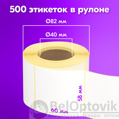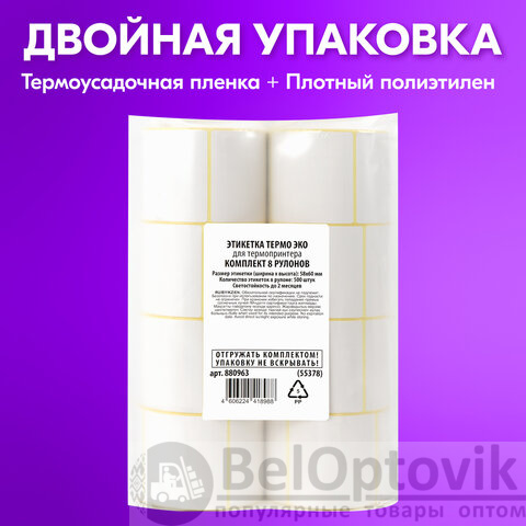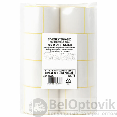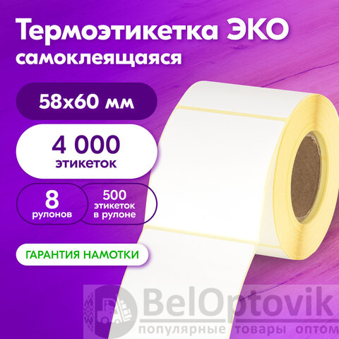 Этикетка ТермоЭко (58х60 мм), 500 этикеток в ролике, КОМПЛЕКТ 8 шт., светостойкость до 2 месяцев, 880963