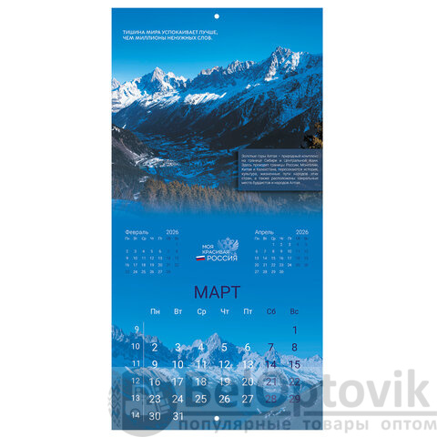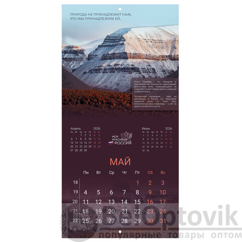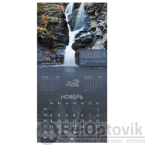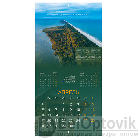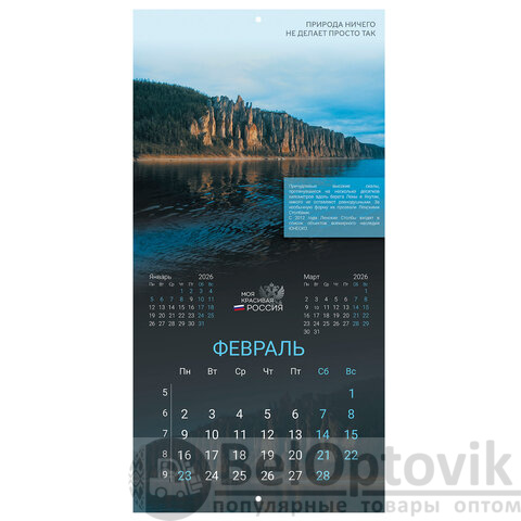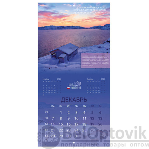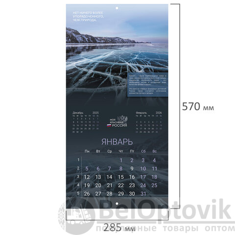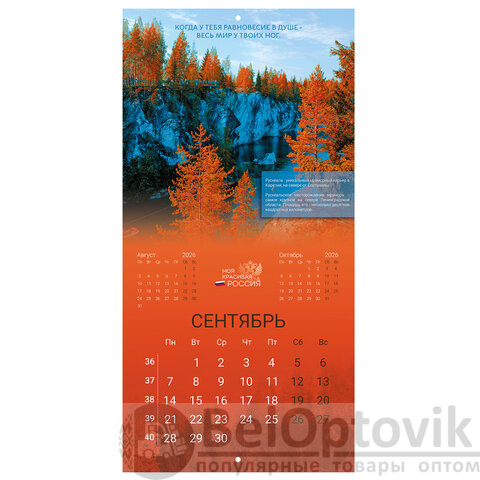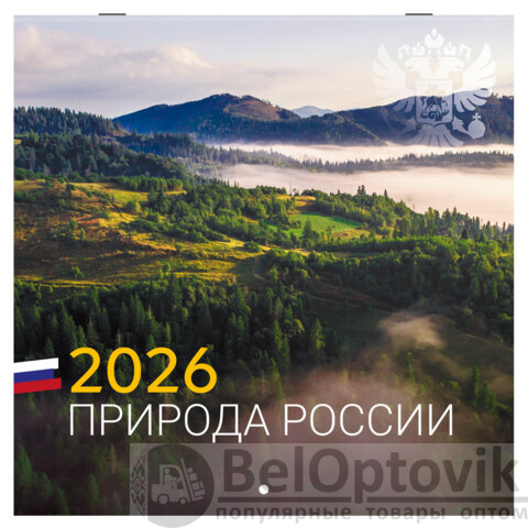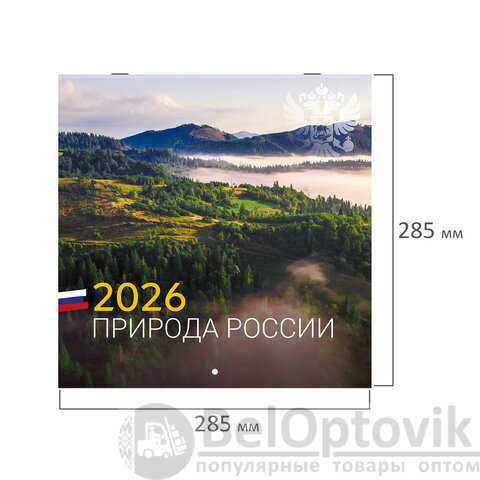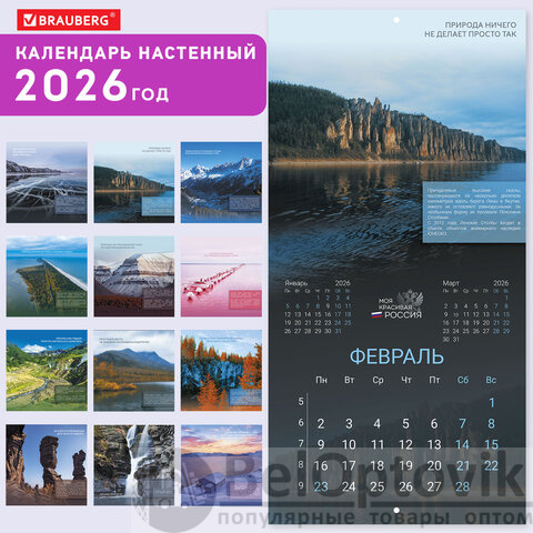 Календарь настенный перекидной 2026 г., BRAUBERG, 12 листов, 28,5х28,5 см, "Природа России", 116926