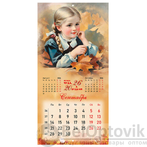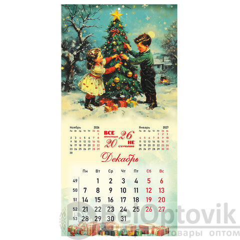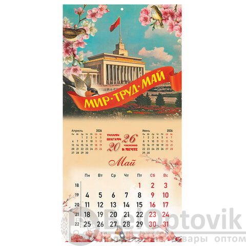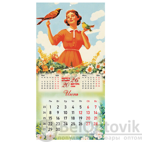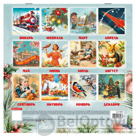 Календарь настенный перекидной 2026 г., BRAUBERG, 12 листов, 28,5х28,5 см, "Советские открытки", 116933