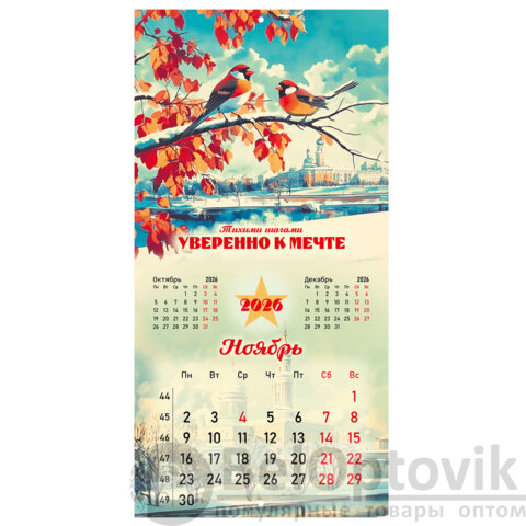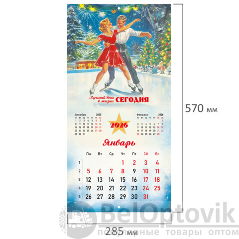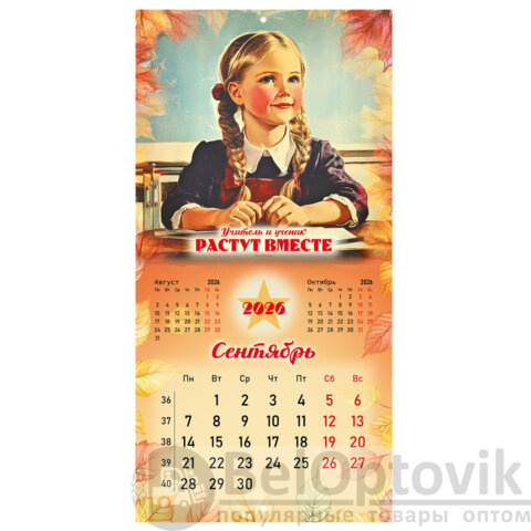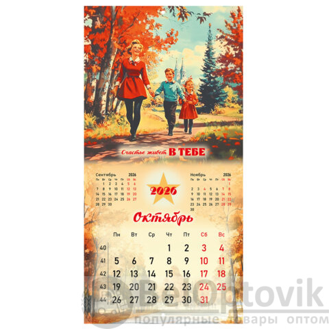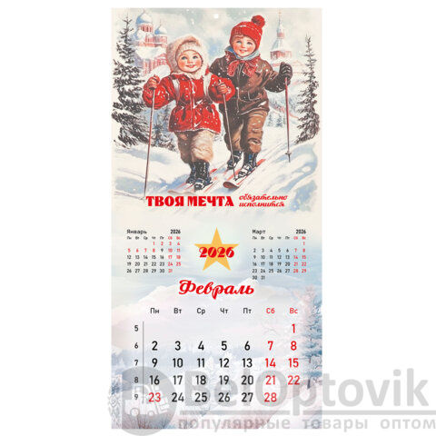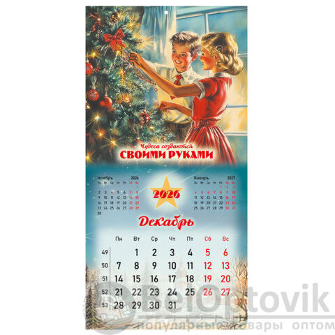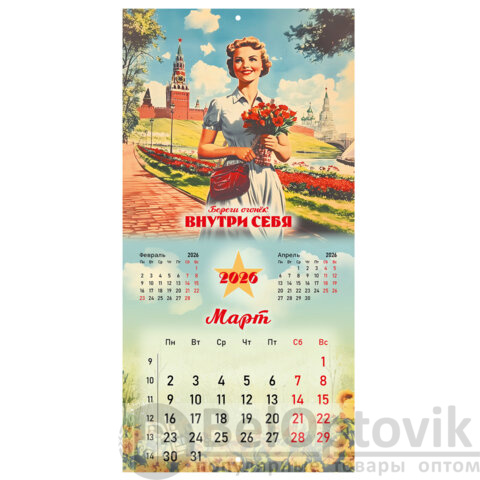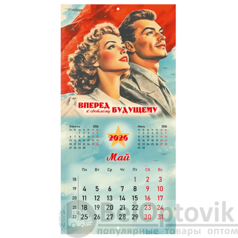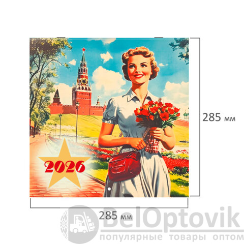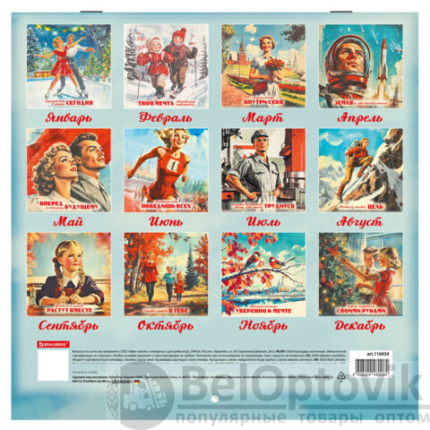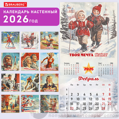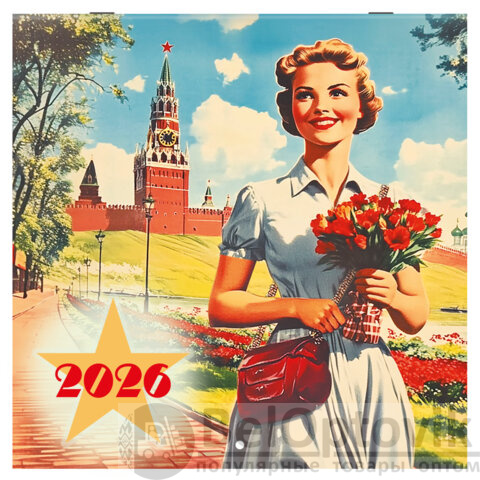 Календарь настенный перекидной 2026 г., BRAUBERG, 12 листов, 28,5х28,5 см, "Советские плакаты", 116934