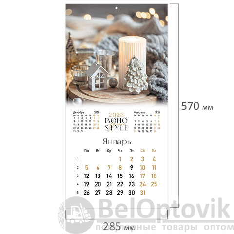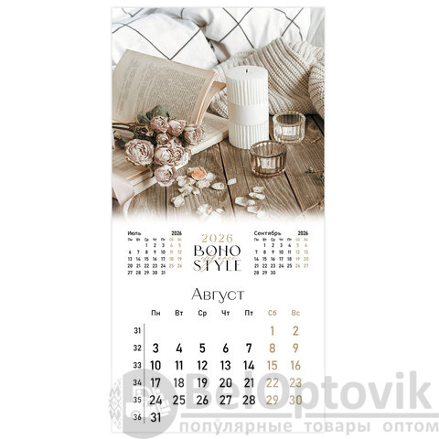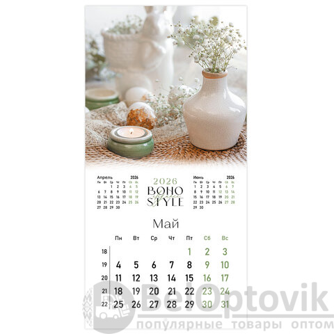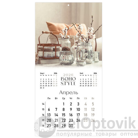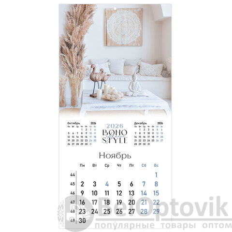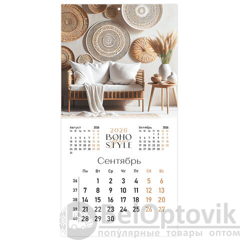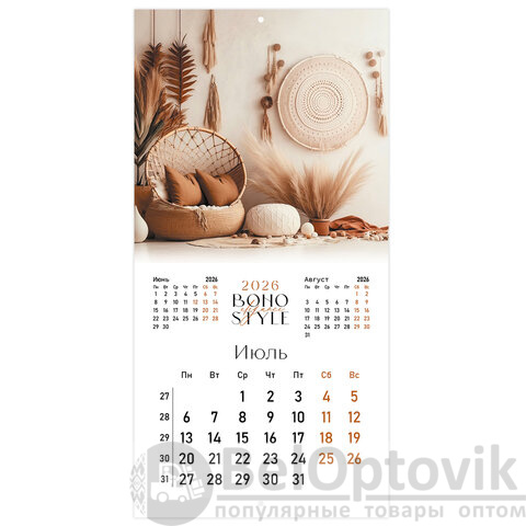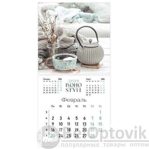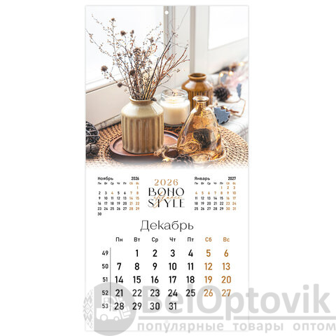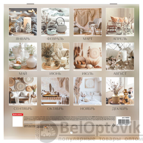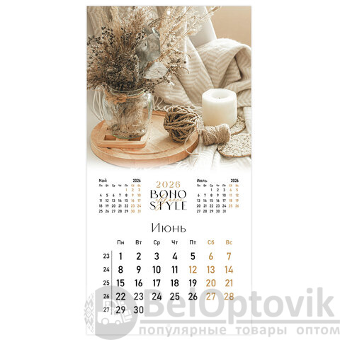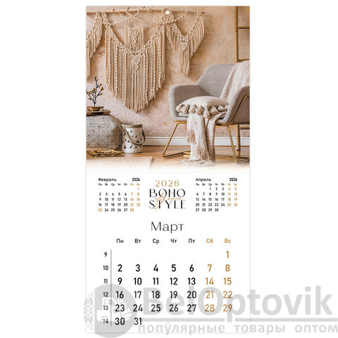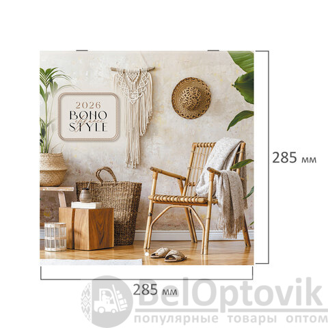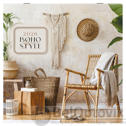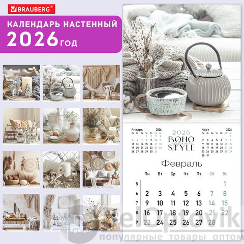 Календарь настенный перекидной 2026 г., BRAUBERG, 12 листов, 28,5х28,5 см, "Бохо", 116935