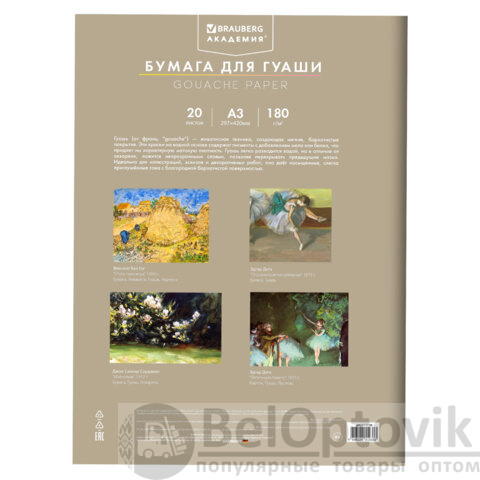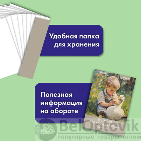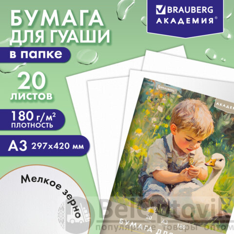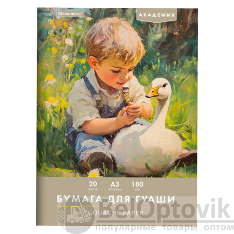 Бумага для гуаши А3 20 л., 180 г/м2, 297х420 мм, в папке, BRAUBERG АКАДЕМИЯ, "Мальчик с гусём", 117738