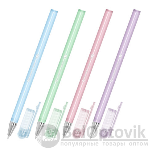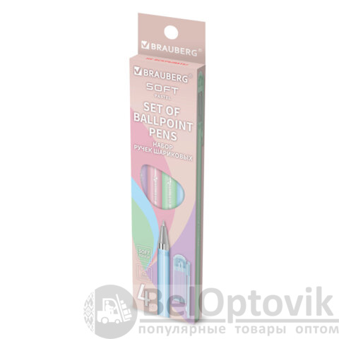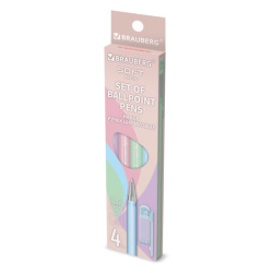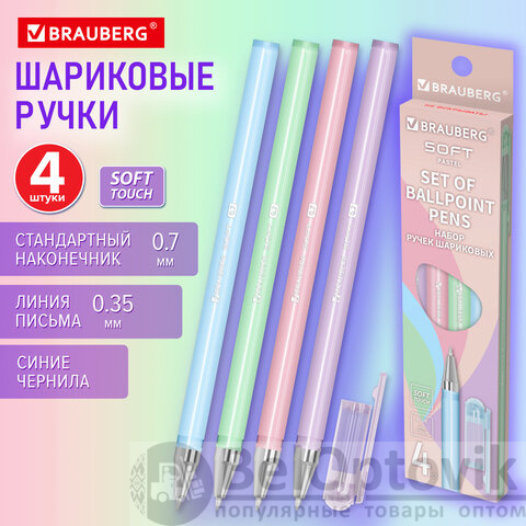 Ручки шариковые BRAUBERG "MARSHMALLOW", НАБОР 4 ШТУКИ, СИНИЕ, SOFT TOUCH покрытие, узел 0,7 мм, линия письма 0,35 мм, 144400