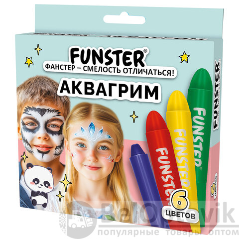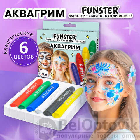 Аквагрим для лица и тела, 6 ярких цветов, FUNSTER (ФАНСТЕР), легко смываются, 192571