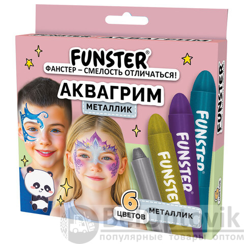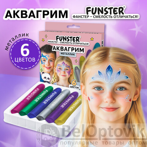 Аквагрим для лица и тела, 6 цветов МЕТАЛЛИК, FUNSTER (ФАНСТЕР), легко смываются, 192574