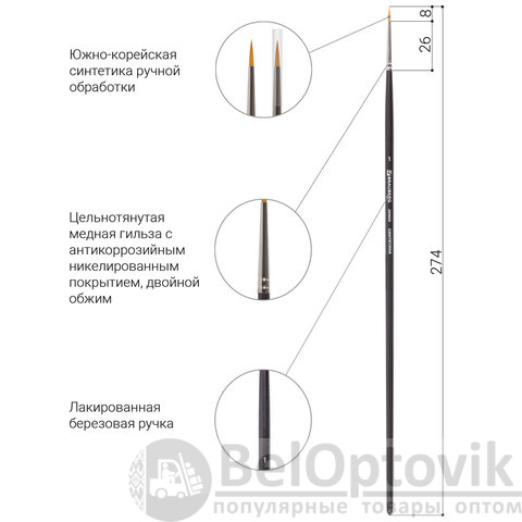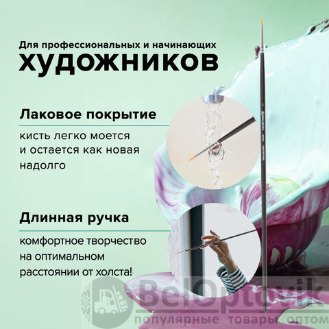 Кисть художественная проф. BRAUBERG ART CLASSIC, синтетика жесткая, круглая, № 1, длинная ручка, 200656