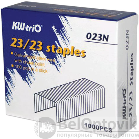 Скобы для степлера №23/23, 1000 штук, KW-trio, от 110 до 200 листов, 023N, -023N