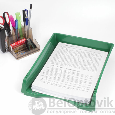 Лоток горизонтальный для бумаг STAFF "Profit", A4 (330х260х60 мм), полипропилен, зеленый, 237273