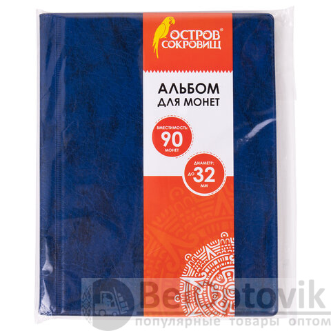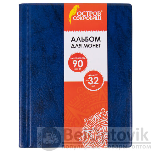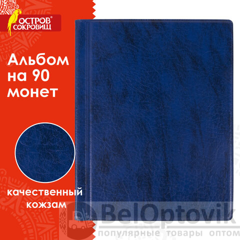 Альбом нумизмата для 90 монет (диаметр до 32 мм), 145х185 мм, синий, ОСТРОВ СОКРОВИЩ, 237958