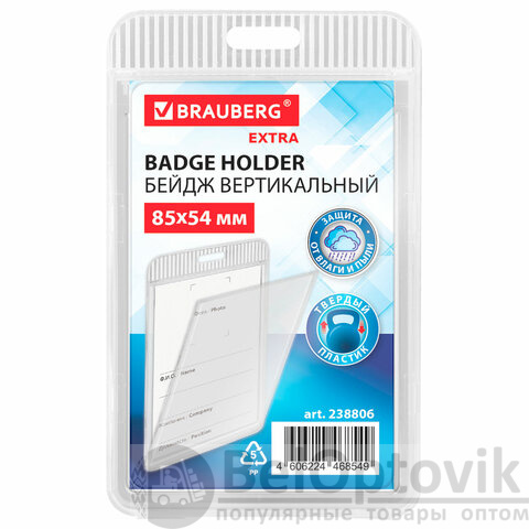 Бейдж вертикальный (85х54 мм), прозрачный, ЗАЩИТА ОТ ВЛАГИ И ПЫЛИ, BRAUBERG EXTRA, 238806