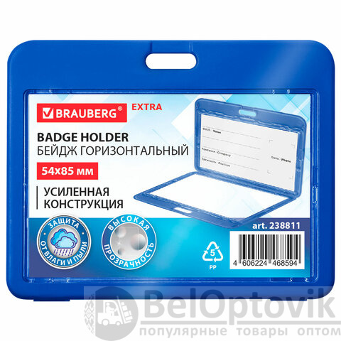 Бейдж горизонтальный (54х85 мм), ДВУСТОРОННИЙ, cиний, ЗАЩИТА ОТ ВЛАГИ И ПЫЛИ, BRAUBERG EXTRA, 238811