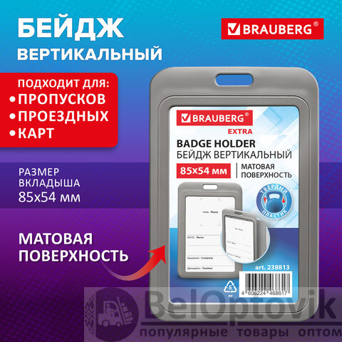 Вертикальный бейдж BRAUBERG для хранения пропусков и карточек сотрудников, ID-карт, проездных и банковских карт.
