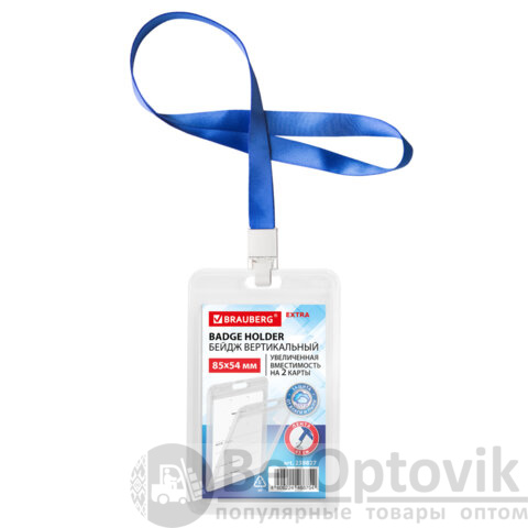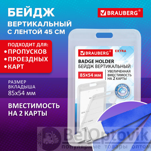 Вертикальный бейдж BRAUBERG EXTRA для хранения пропусков и карточек сотрудников, ID-карт, проездных и банковских карт.