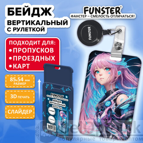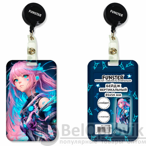 Бейдж вертикальный с 3D печатью "Аниме" (85х54 мм), с рулеткой, СЛАЙДЕР, FUNSTER, 238840