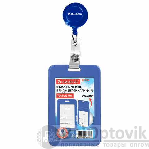 Вертикальный бейдж с рулеткой BRAUBERG для хранения тонких пропусков, карточек, ID-карт, проездных и банковских карт.