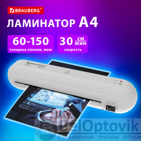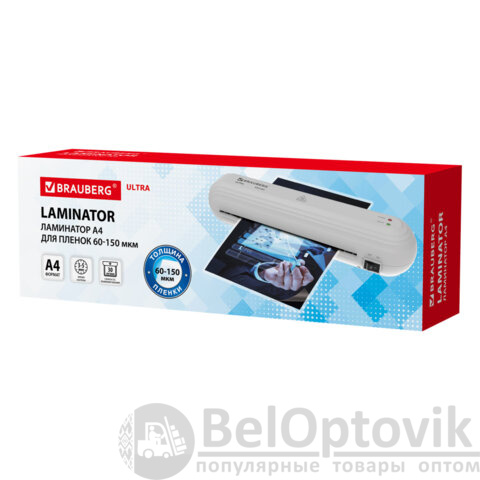 Ламинатор BRAUBERG ULTRA PM235W, БЕЛЫЙ, формат A4, толщина пленки 60-150 мкм, скорость 30 см/мин, 532184
