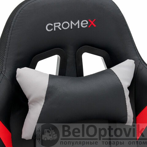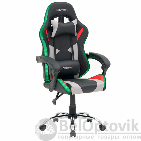 Кресло компьютерное CROMEX (КРОМЕКС) "Quantum GM-155 RGB", подсветка, две подушки, экокожа, черное/красное/серое, 532955