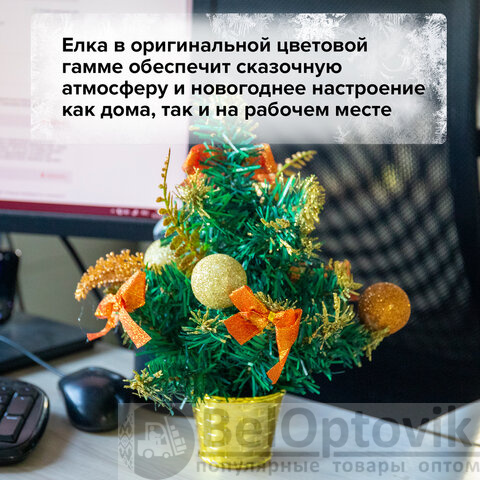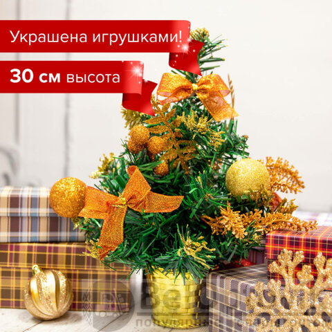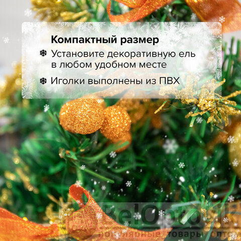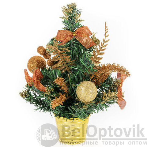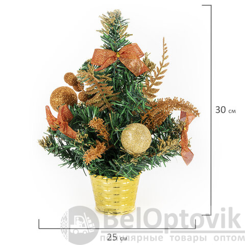 Ель искусственная декоративная 30 см, ПВХ, цвет украшений: медно-золотистый, ЗОЛОТАЯ СКАЗКА, 591326