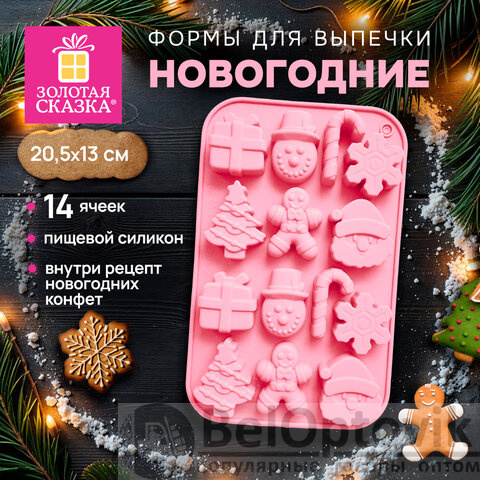 Форма для выпечки новогодняя 21х13 см "Xmas Sweets", силикон, 14 ячеек, рецепт, ЗОЛОТАЯ СКАЗКА, 592471