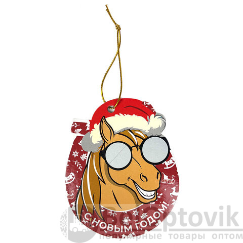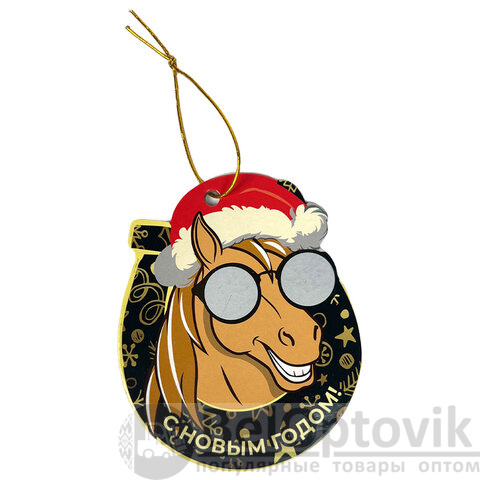 Новогоднее подвесное украшение картонное украшение "Новогодняя лошадка" с предсказанием на предстоящий год.