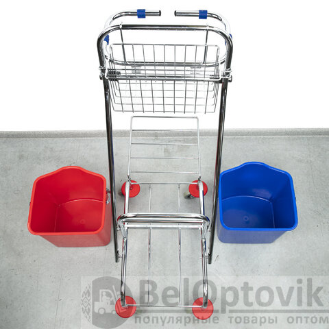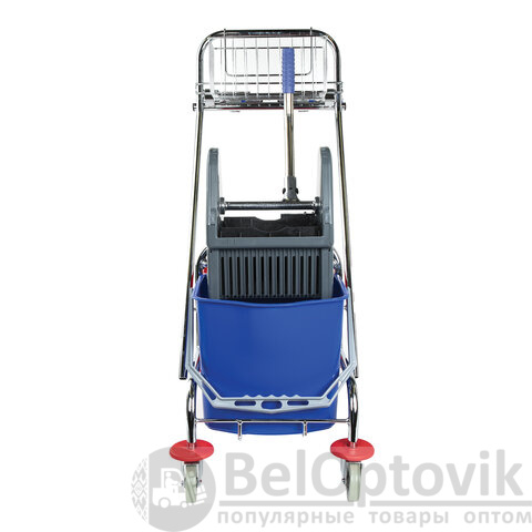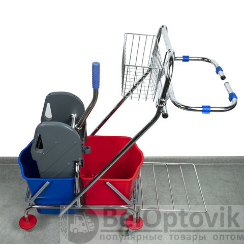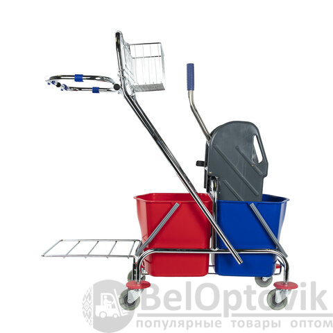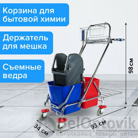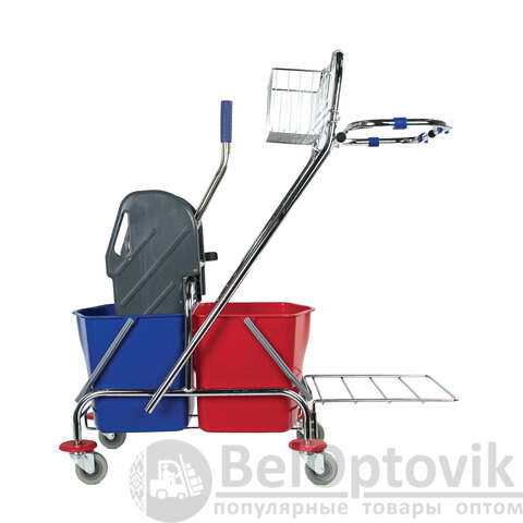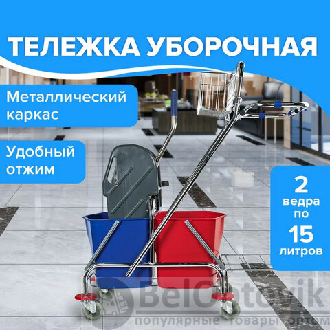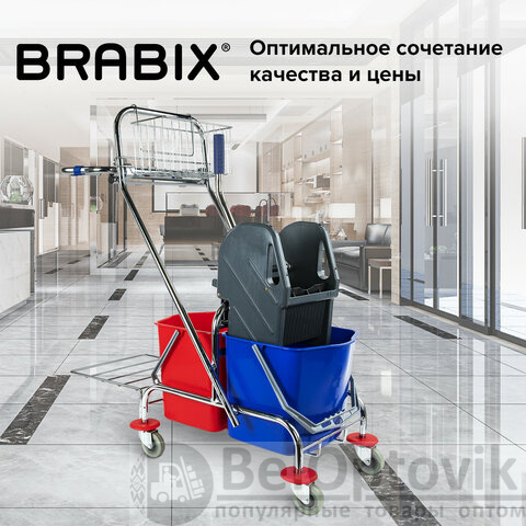 Тележка уборочная BRABIX, 2-съемных ведра по 15 л, отжим, корзина, держатель для мусорного мешка с поддерживающей платформой, 601500