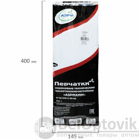 Перчатки резиновые технические кислотощелочестойкие КЩС Тип-1, К20/Щ20, размер 1 (средний), АЗРИ
