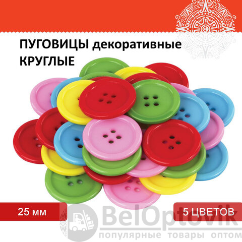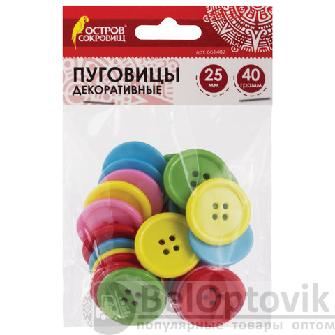 Пуговицы декоративные "Круглые", пластик, 25 мм, 5 цветов, 40 г, ОСТРОВ СОКРОВИЩ, 661402