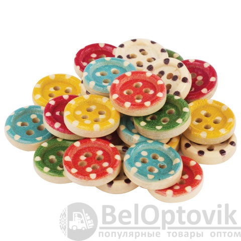 Пуговицы декоративные "Горошек", дерево, 13 мм, 24 шт., 6 цветов, ОСТРОВ СОКРОВИЩ, 661414