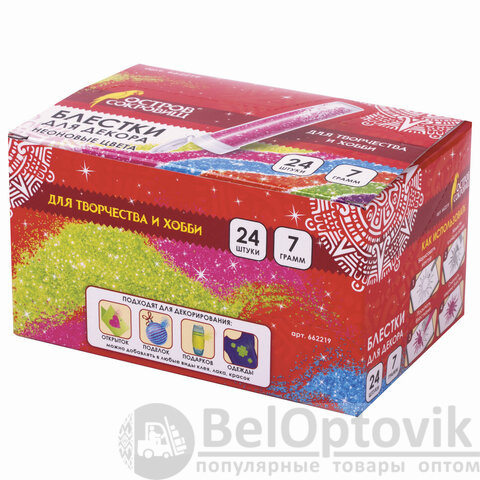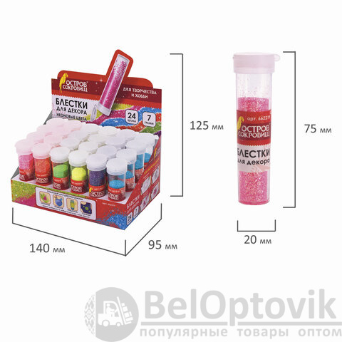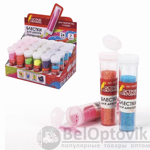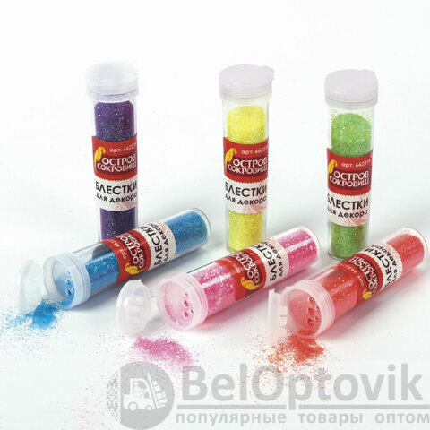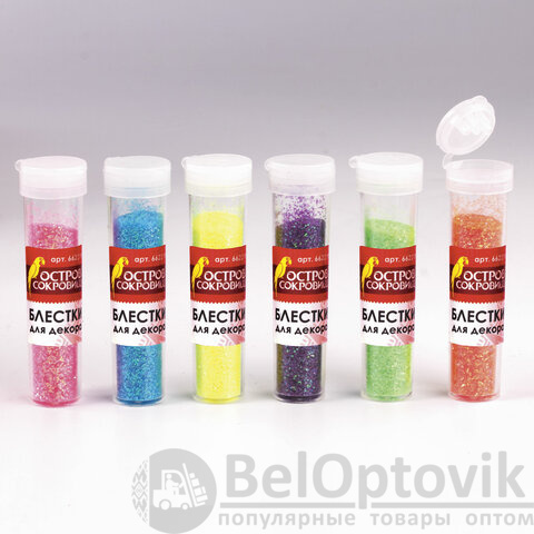 Блестки (глиттер) для декора, поделок, DIY, творчества, оформления, ОСТРОВ СОКРОВИЩ, НЕОН, 7 грамм, ассорти, в дисплее, 662219