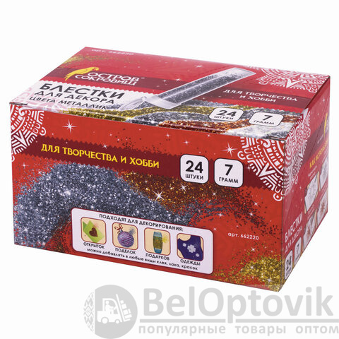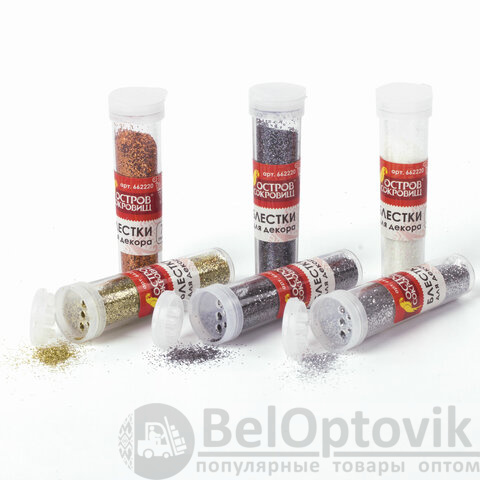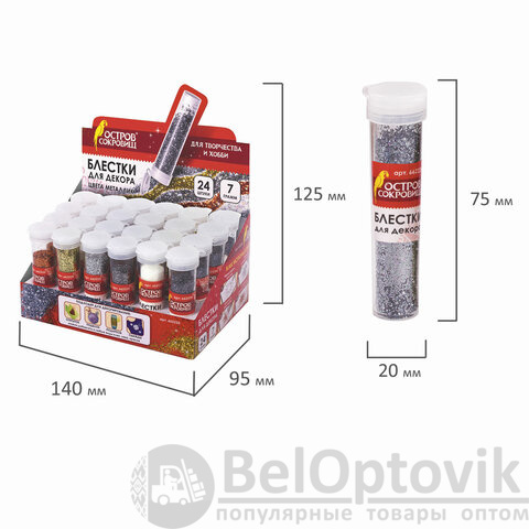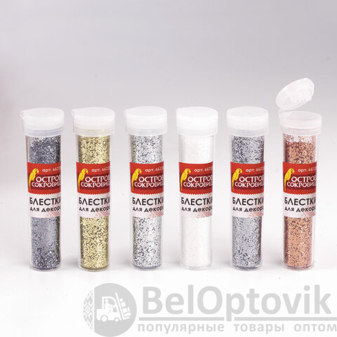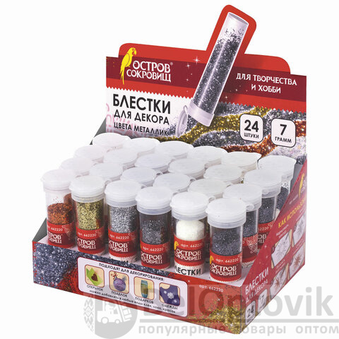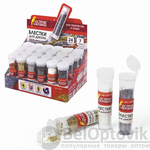 Блестки (глиттер) для декора, поделок, DIY, творчества, оформления, ОСТРОВ СОКРОВИЩ, МЕТАЛЛИК, 7 грамм, ассорти, в дисплее, 662220