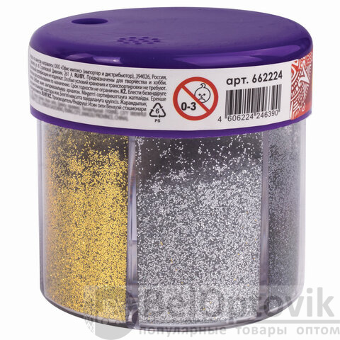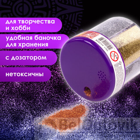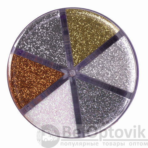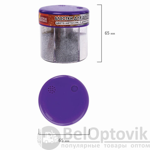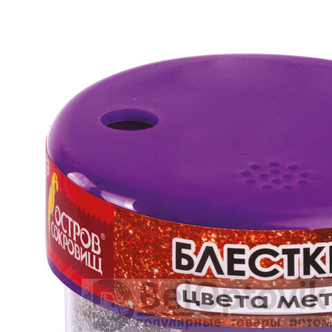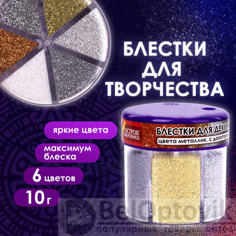 Блестки (глиттер) для декора, поделок, DIY, творчества, оформления, ОСТРОВ СОКРОВИЩ, МЕТАЛЛИК, диспенсер с дозатором, 6 цв по 10 г, 662224