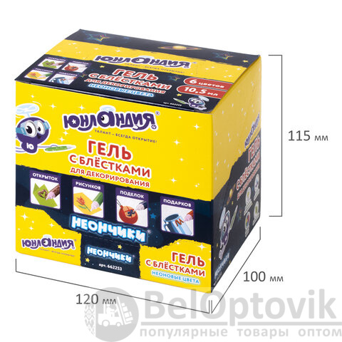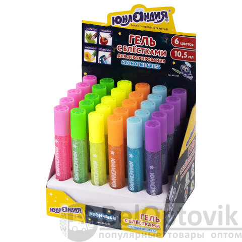Гель с блестками ЮНЛАНДИЯ "НЕОНЧИКИ", для декора, поделок, DIY, творчества, оформления, 10,5 мл, цвета ассорти, в дисплее, 662253