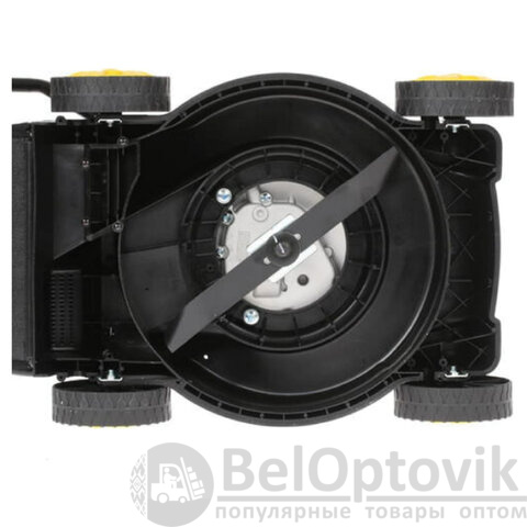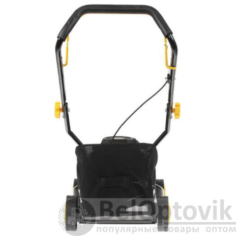 Стальные ножи срезают 420 мм травы в ширину, что позволяет быстро проходить большие площади. Скошенный газон собирается в большой тканевый травосборник объёмом 40 литров. Боковой выброс и функция мульчирования не предусмотрены.