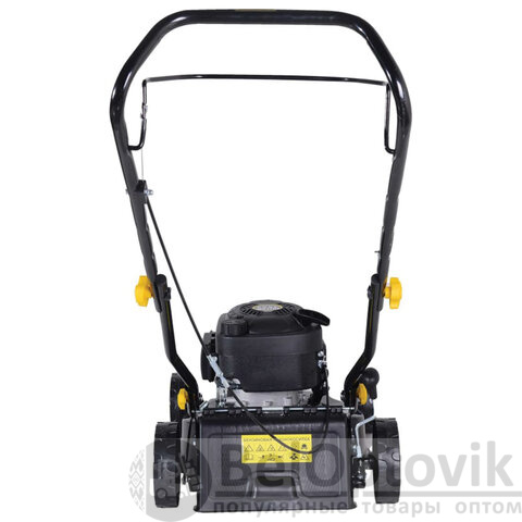 Бензогазонокосилка перемещается по участку за счёт колес – оператор толкает её вперёд и направляет движение. Высота рукоятки настраивается в соответствии с ростом пользователя. Складной механизм ручки упрощает транспортировку и хранение.