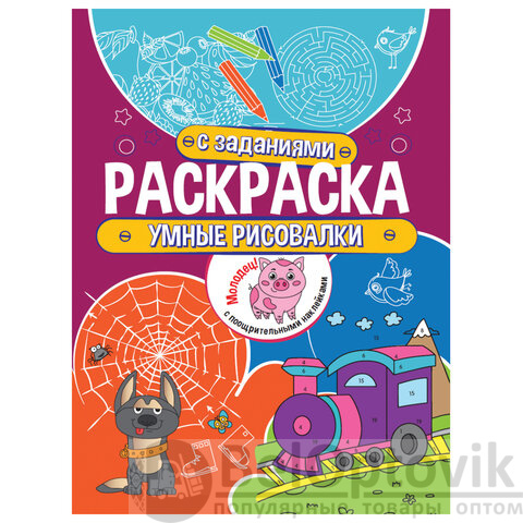 Книжка-раскраска с заданиями УМНЫЕ РИСОВАЛКИ, 70 наклеек, 197х276 мм, 24 стр., ПП, 2180-3