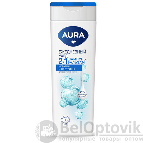 Шампунь-бальзам 2 в 1 для всех типов волос, 380 мл, AURA "Ежедневный уход", 14132