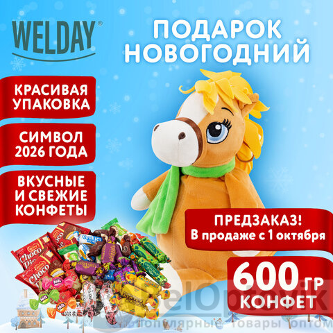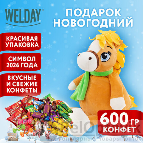 Подарок новогодний БЕЛОКУРЫЙ ЯША "Мягкая игрушка-символ 2026 года", НАБОР конфет 600 г, WELDAY (ВЭЛДЭЙ)