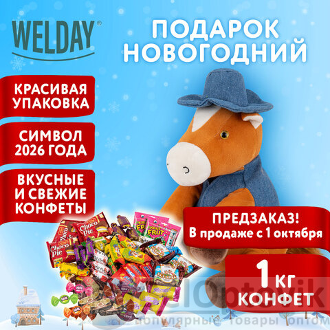 Подарок новогодний ЛОВКИЙ КОВБОЙ "Мягкая игрушка-символ 2026 года", НАБОР конфет 1000 г, WELDAY (ВЭЛДЭЙ)