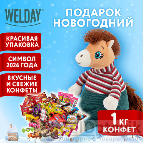 Подарок новогодний МИЛАШКА СТЕША "Мягкая игрушка-символ 2026 года", НАБОР конфет 1000 г, WELDAY (ВЭЛДЭЙ)