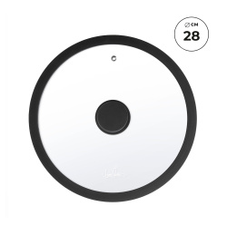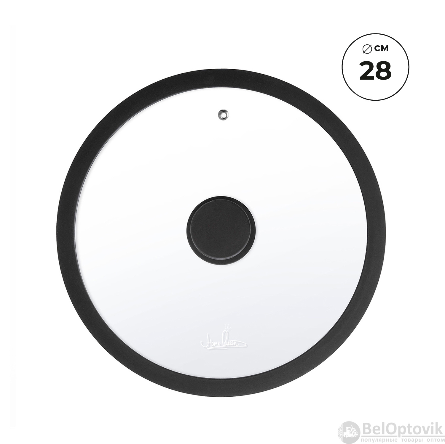 Крышка стеклянная с силиконовым ободом Home Queen RED HOT, черная, D 28см/12/6