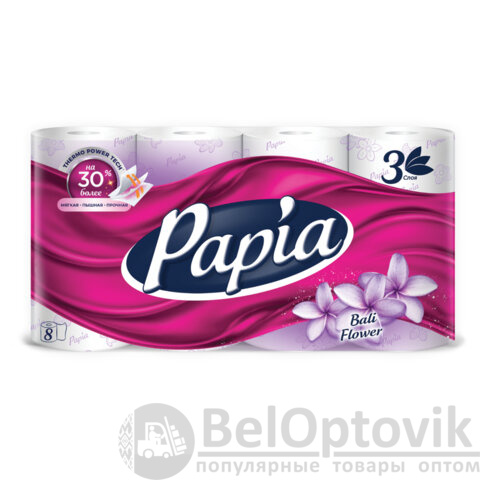 Бумага туалетная быт., спайка 8 шт., 3-слойная (8х16,5 м), PAPIA, аромат "Балийский цветок", 5080738