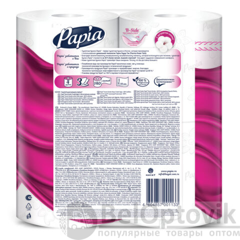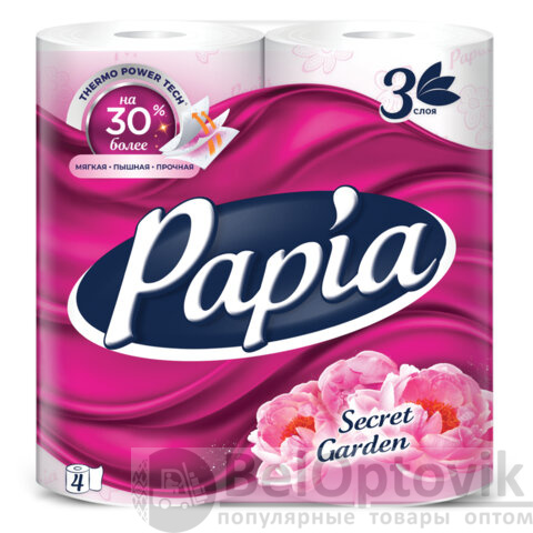 Бумага туалетная бытовая, спайка 4 шт., 3-слойная (4х16,5 м), PAPIA, аромат "Таинственный сад", 5080741