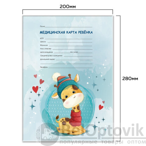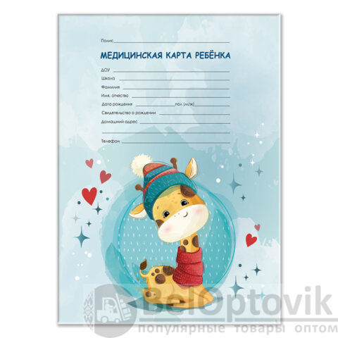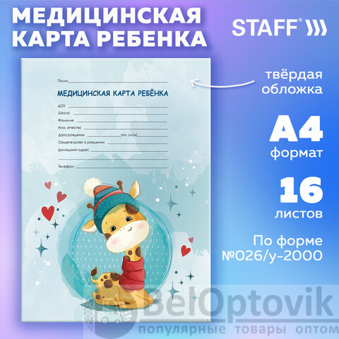 Медицинская карта ребёнка форма №026/у-2000, 16 л., картон, А4 200x280 мм, "Жирафик", STAFF, 130290