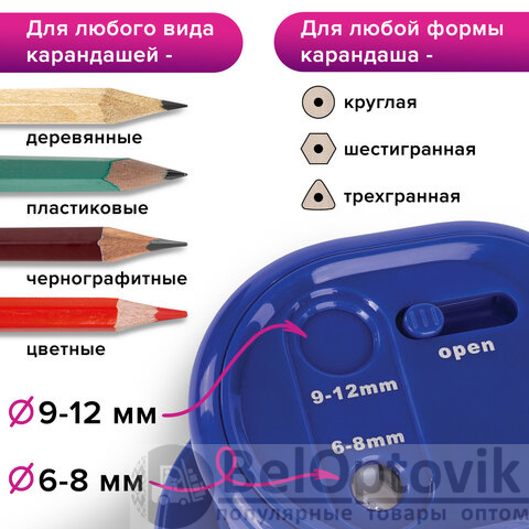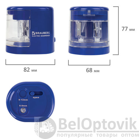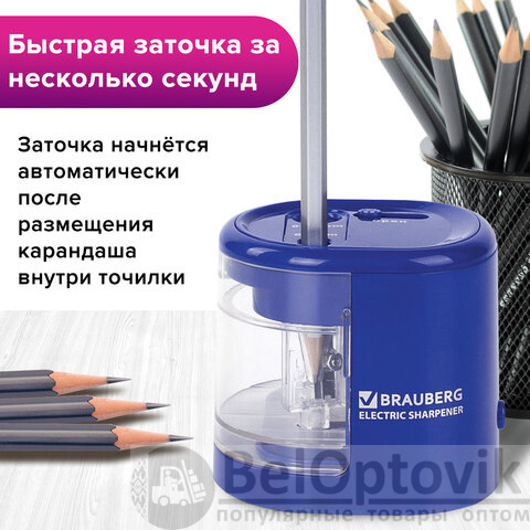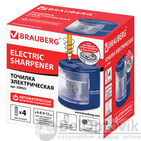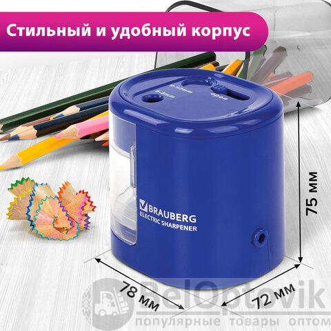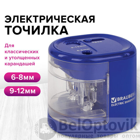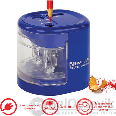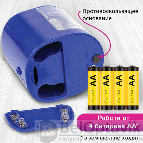 Точилка электрическая BRAUBERG "STANDARD", 2 отверстия для карандашей (включая утолщенные), питание от 4 батареек АА, 228423