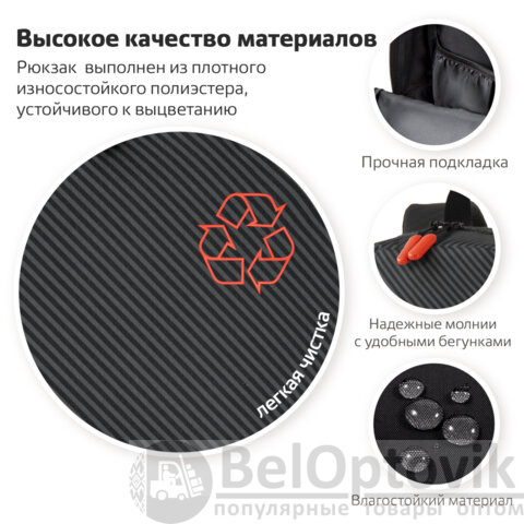 Рюкзак упакован в плотный ПЭТ-пакет, который сохранит качество и товарный вид при хранении и транспортировке.