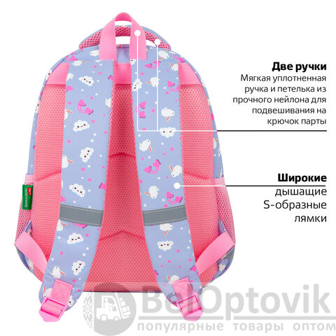 Нести рюкзак будет удобно не только на плечах, но и в руке за прочную уплотненную ручку. Также имеется специальная петелька из плетеной нейлоновой нити, чтобы вешать рюкзак на крючок парты.