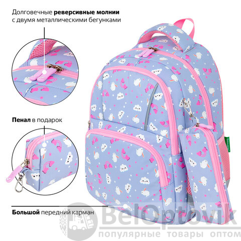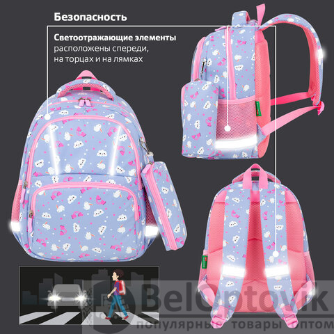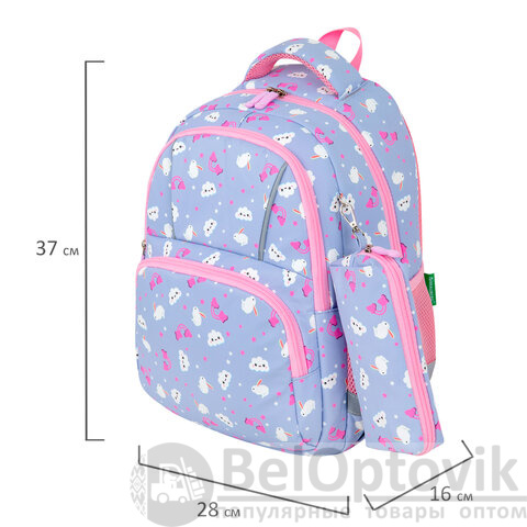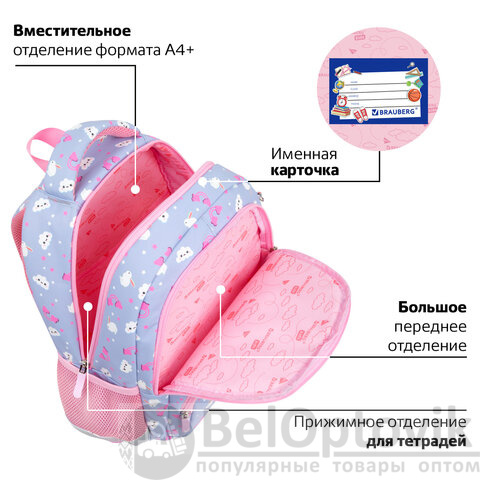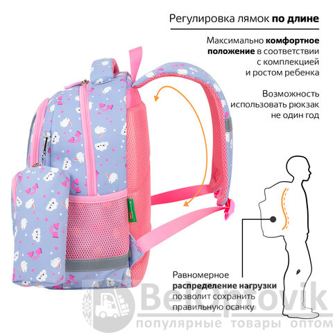 В основном отделении рюкзака можно легко и быстро разместить учебники и тетради формата А4+. Большое переднее отделение вмещает тетради и учебники формата А4, а дополнительный кармашек на молнии подойдет для хранения мелочей. Такая организация пространства поможет держать принадлежности в сохранности и приучить ребенка к порядку.